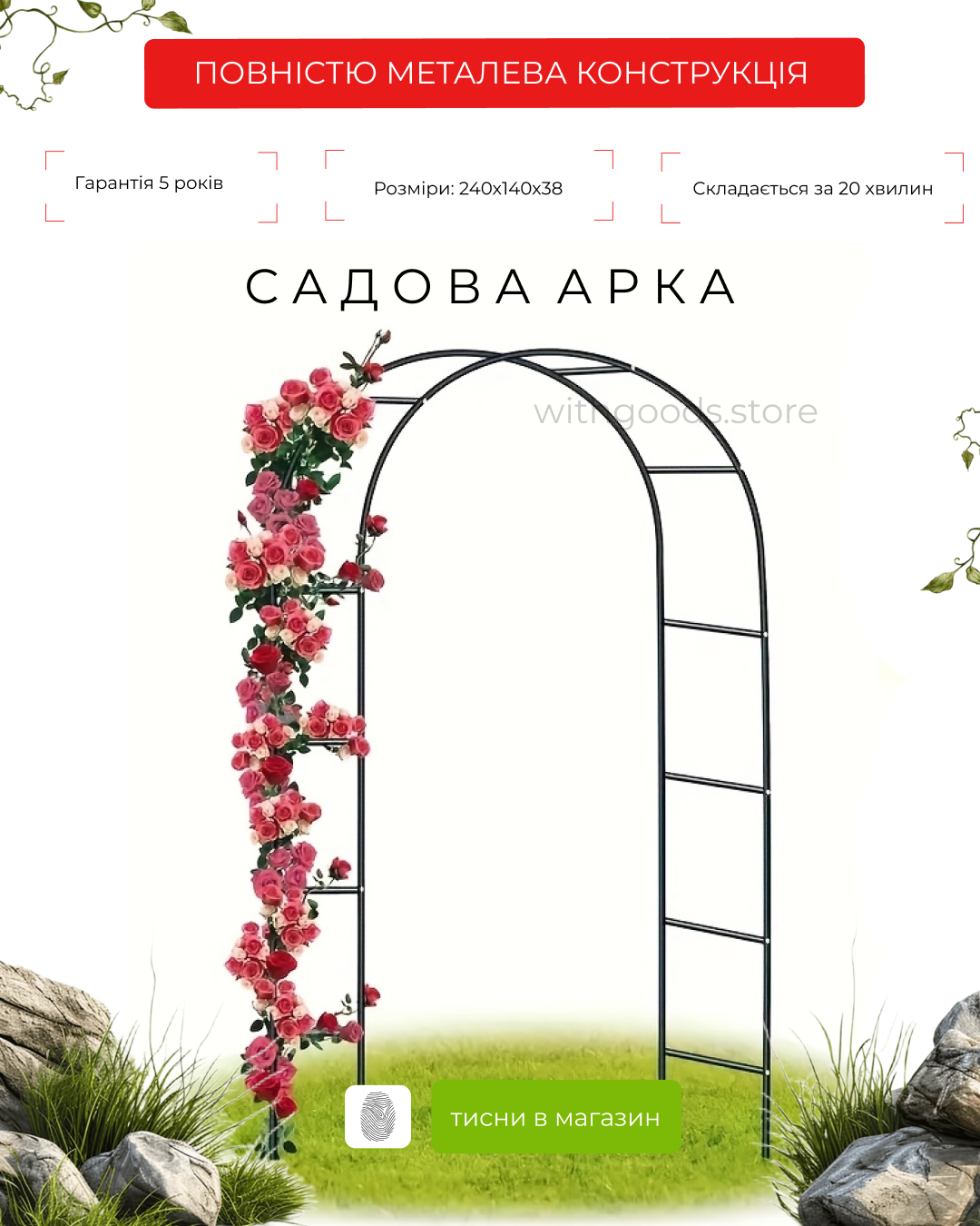 "Арка Pergola" - дизайнерський елемент вашого саду, яка не лише виконує роль організації рослин, але й унікальної прикраси