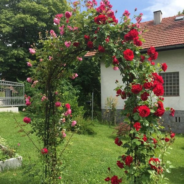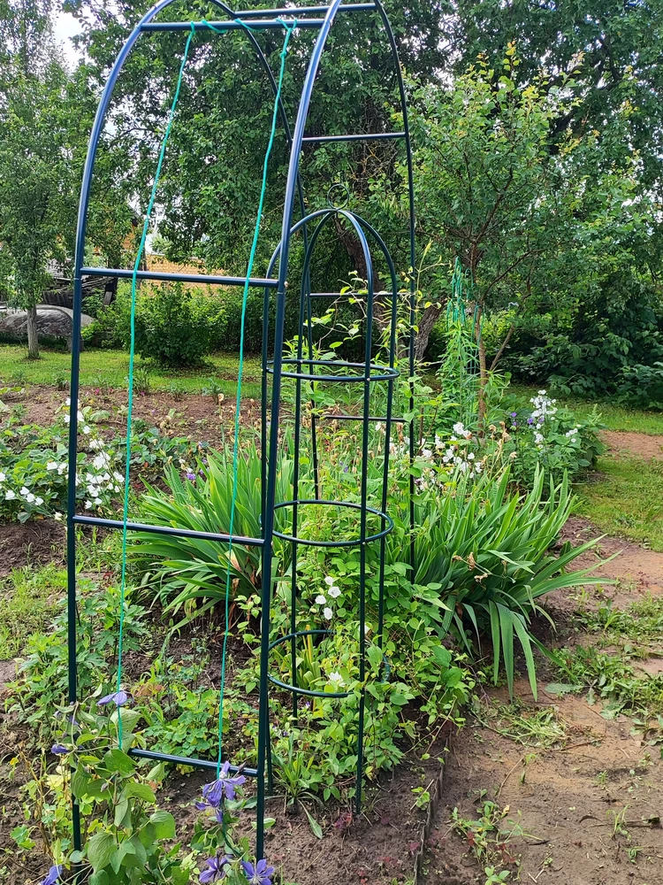 Купувала ще на початку літа, встановила на кущ і вже починає обплітати, трояндам сподобалось)))